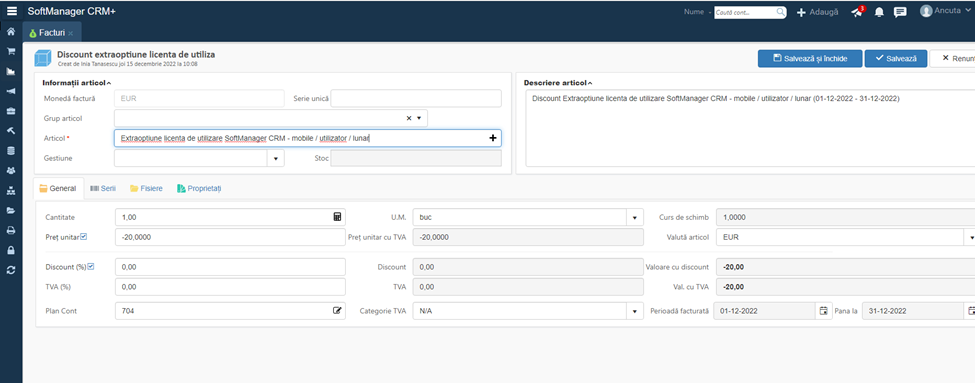 Veți putea defini diferite tipuri de contracte (interne, externe, de produse sau de servicii) și facturi (proforme, de avans sau finale).